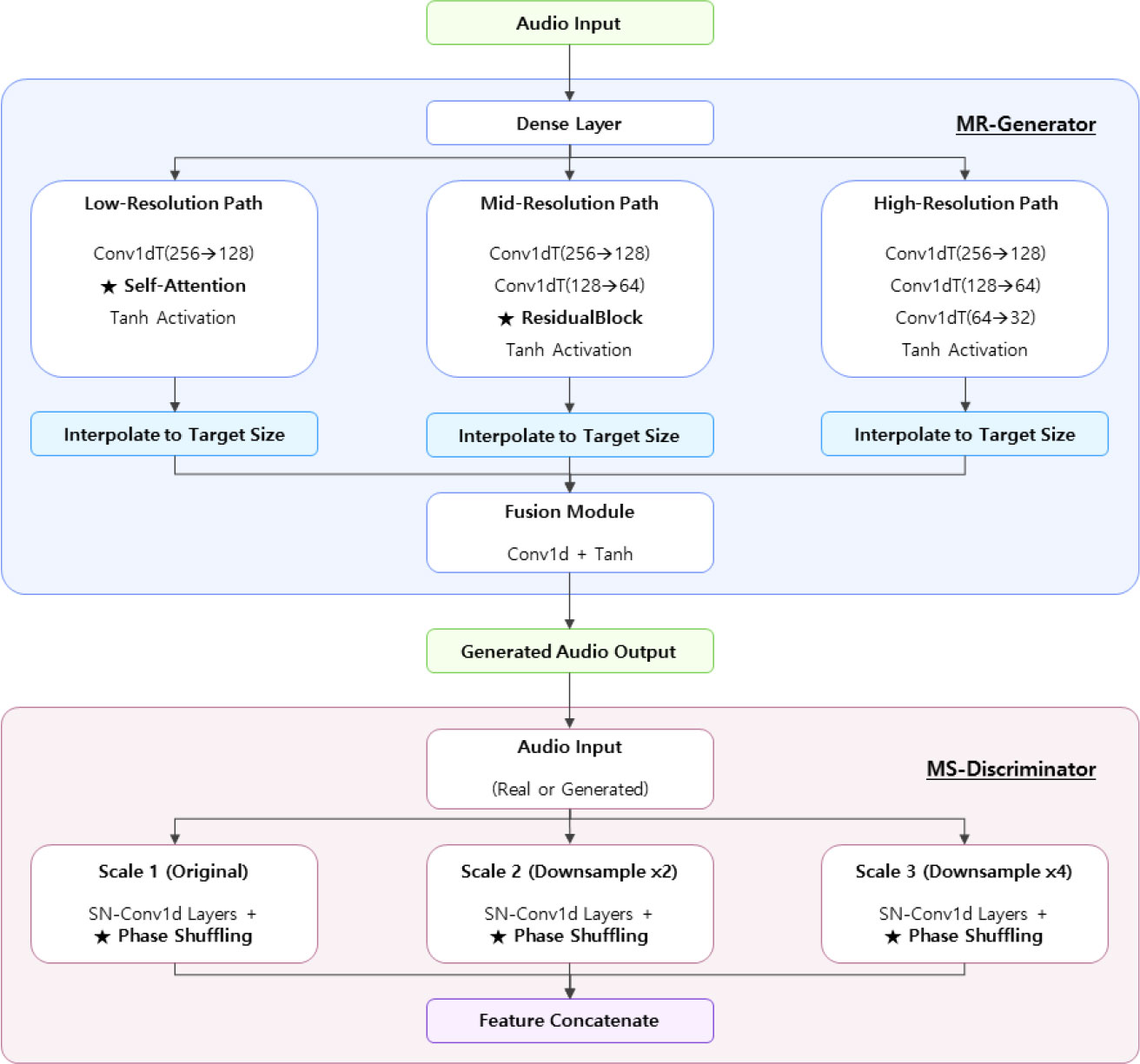MRMS-WaveGAN : 파형 도메인 오디오 데이터 증강을 위한 다중 해상도 · 다중 스케일 기반의 WaveGAN 확장 모델